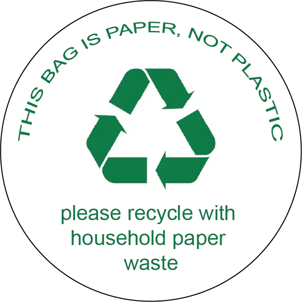 Our 100% Recycled Labels are produced using premium paper made entirely from post-consumer household paper waste, offering a sustainable, eco-friendly labelling solution without compromising quality. Printed green 'this bag is paper, not plastic' text on a white background with a strong permanent adhesive, these labels are the perfect way to highlight that your packaging or products are fully 100% recyclable.
