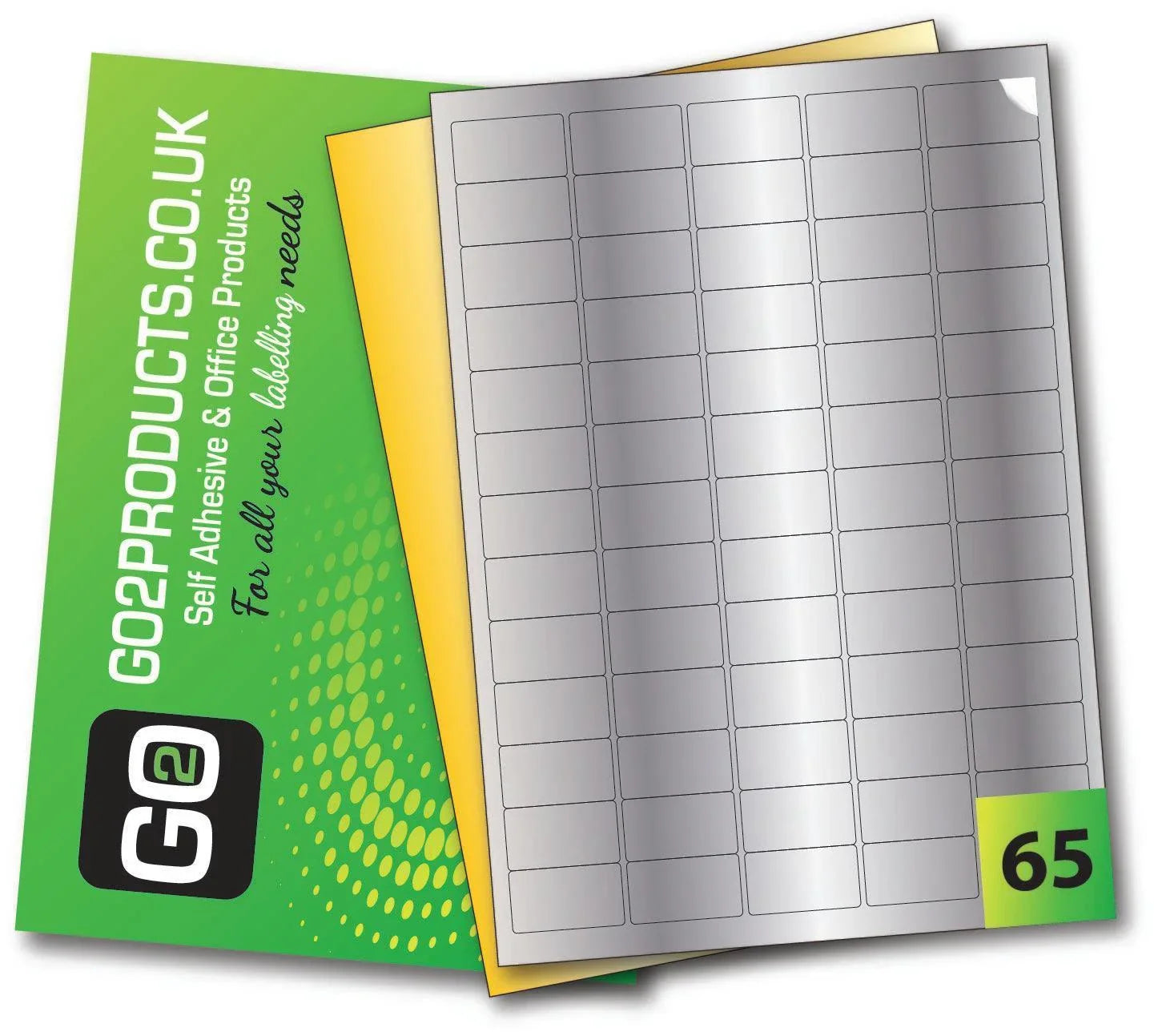 65 Metallic coloured labels per sheet with a strong permanent adhesive, choose from metallic gold or metallic silver paper, suitable for laser printers, handwriting as well as lithographic and digital presses.